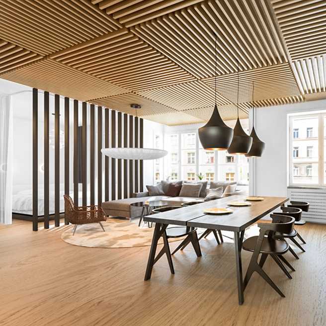 Độ thẩm mỹ cao phù hợp với nhiều không gian kiến trúc khác nhau. Khắc phục được những nhược điểm của gỗ tự nhiên như: cong vênh, ẩm mốc, mối mọt,